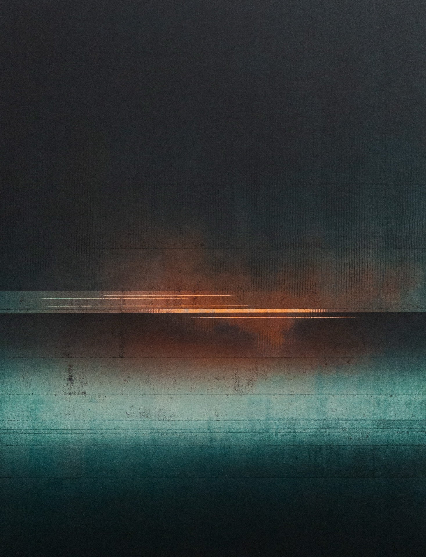 In his paintings, Nico Sawatzki creates abstract pictorial spaces that generate a special depth effect through high-contrast lighting moods. His paintings suggest natural landscapes, which are reduced to their essentials by superimposing a multitude of layers of spray paint and acrylic glazes - and oscillate between condensation and dissolution.
