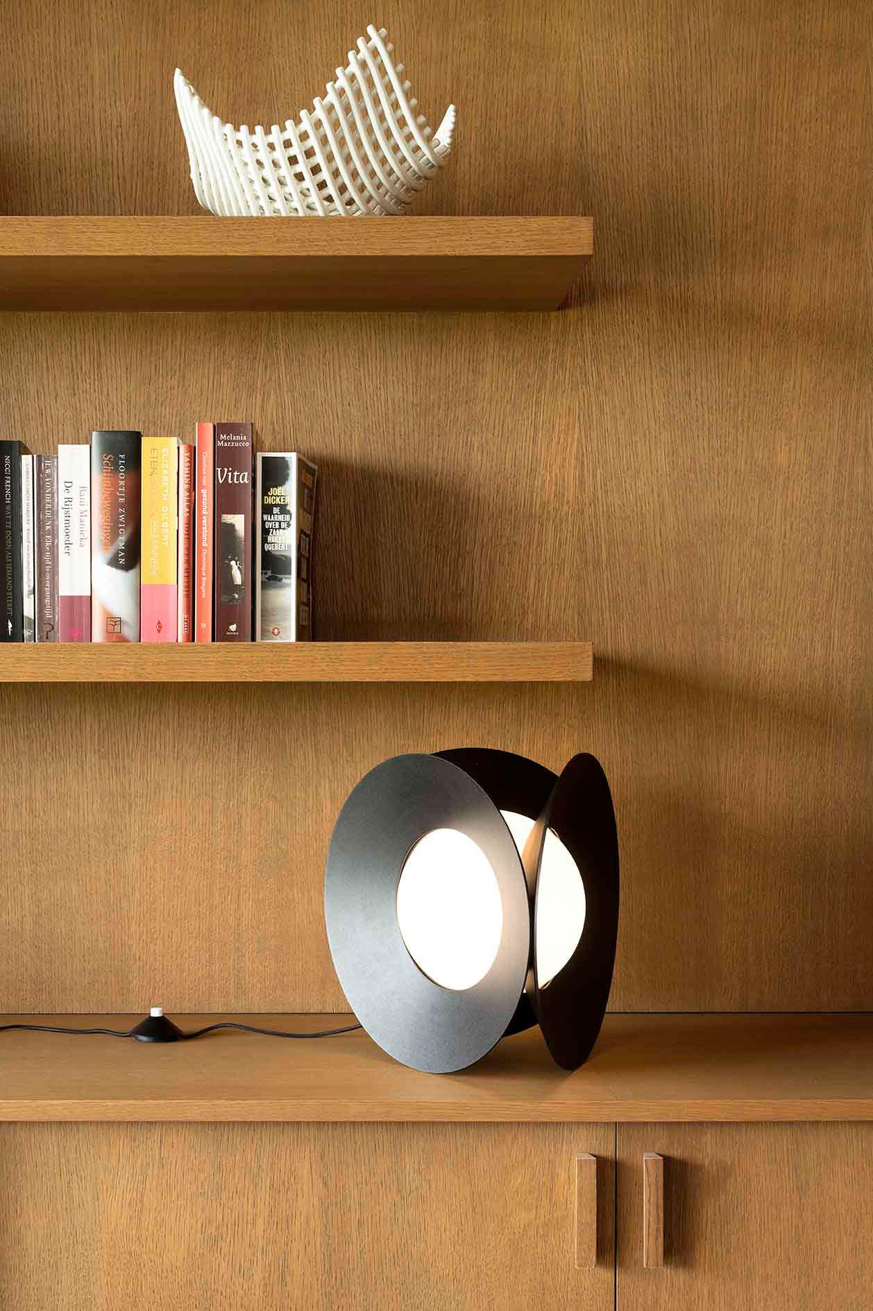 This table lamp was created by designer Grégoire de Lafforest, inspired by geometric shapes and mathematical objects. The ARMEN lamp is a game of interlocking and balancing in two simple shapes: the cone and the sphere. Like the lighthouse that gives the lamp its name, the light is directed by the three cones.