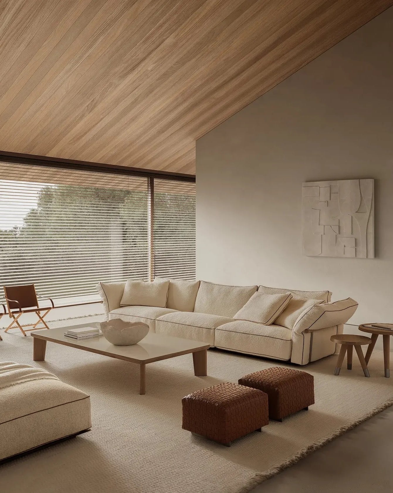 Seat cushion: Filling of sterilized goose down (certified Assopiuma, “golden label”) with core of shape-retaining material.