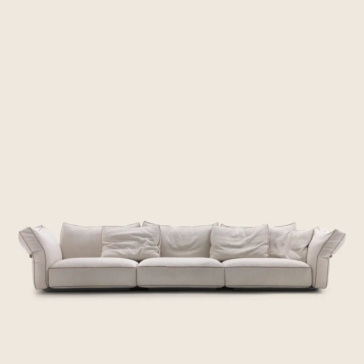 Experience a new dimension in seating comfort with the Camelot seating system! Modularity meets first-class comfort and precision craftsmanship. Enjoy the contrast of soft, generous cushions and the elegant structure made of metal supports, wood or fine cowhide. Customize your sofa with a variety of fabric or leather upholstery, different metal finishes and elegant details. Camelot offers tailor-made flexibility for every room - from variable modules to luxurious goose down cushions. Create seating that impresses with style and comfort in equal measure. Perfect harmony for your home!