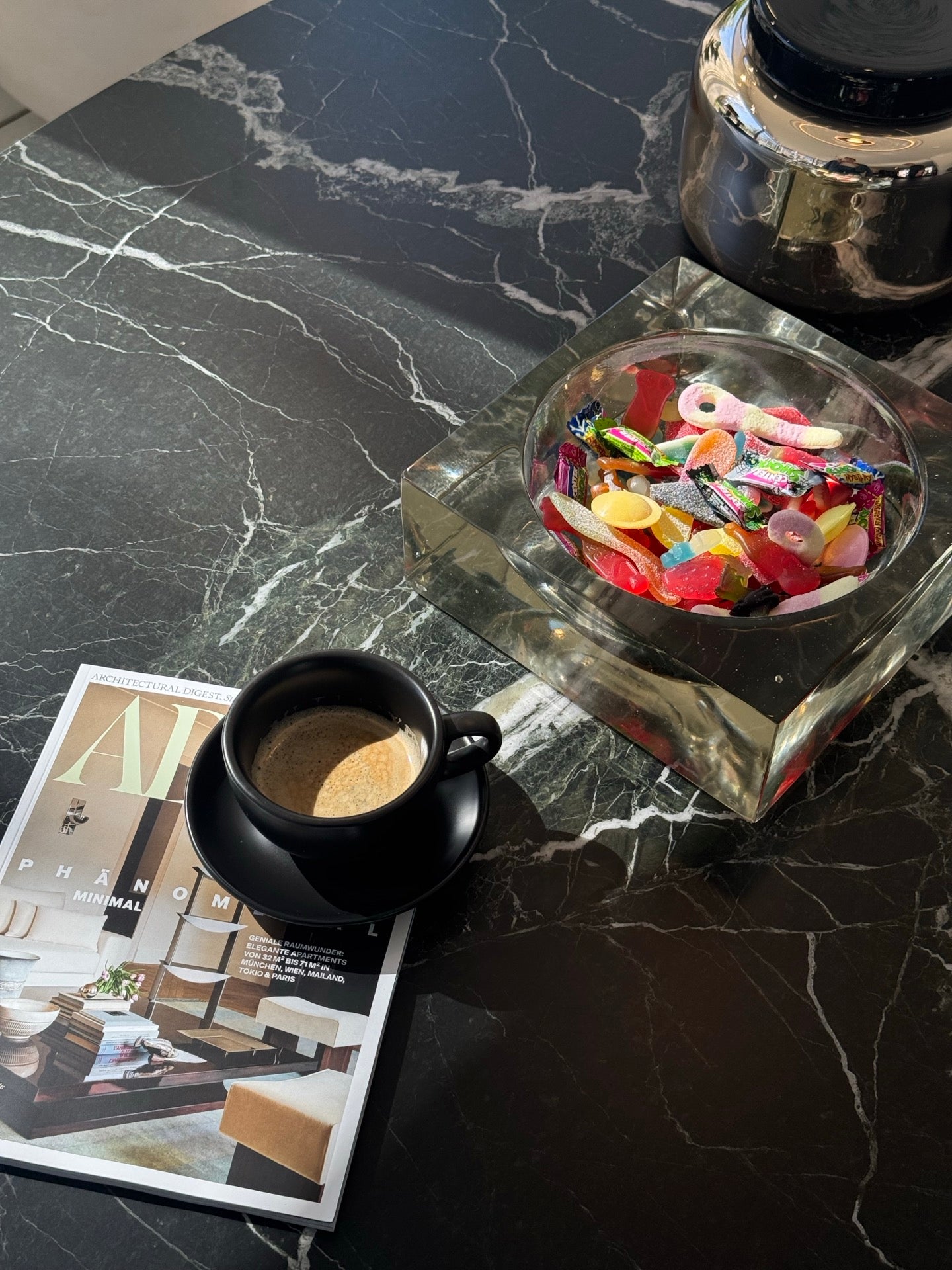 Its harmonious shape makes Edgar a versatile centerpiece – as a decorative element on the dining table, a sculptural bowl on a sideboard, or a refined statement piece in the entryway. The weight and texture of the hand-shaped glass give it a distinct sense of quality and craftsmanship.
