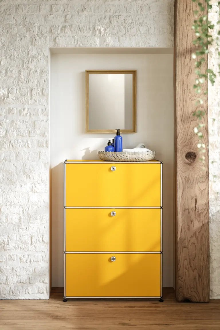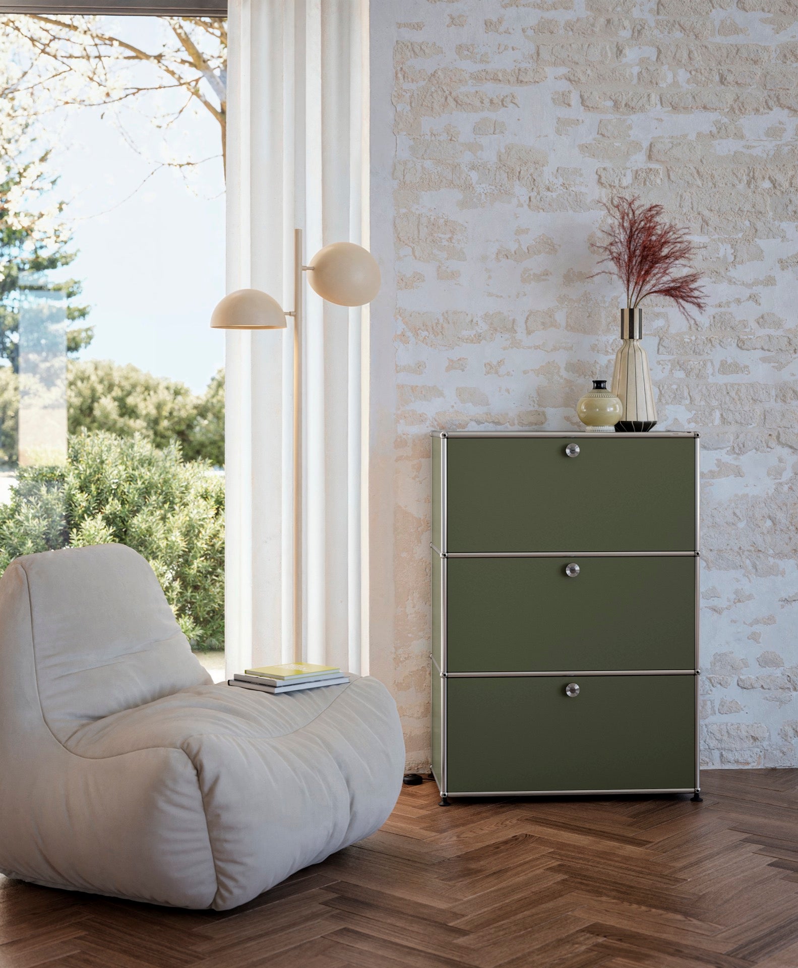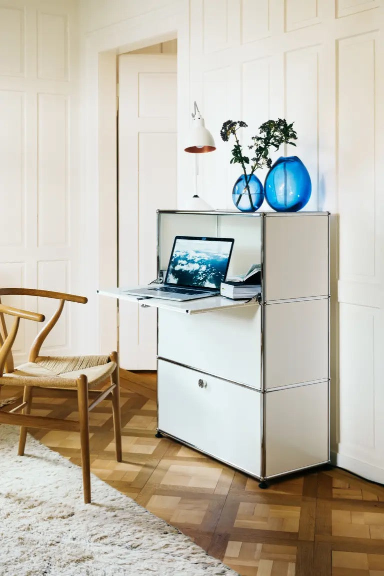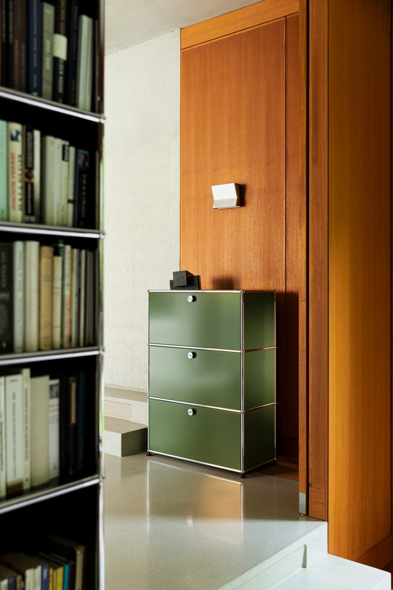 A yes to USM Haller is an investment for life. For durability through flexibility. Because the modular furniture system can be adapted and rearranged to suit any living situation. The work table becomes a dining table, the reception desk becomes a sideboard, the filing cabinet becomes a bookshelf... The idea arose partly from Fritz Haller's architectural design for the construction of the new USM production and administration buildings and partly from Paul Schärer's ingenious idea for the spherical connecting piece of the jointly designed furniture elements. The USM Haller modular furniture system, which was originally intended for the company's own use, went into series production in 1969 and has delighted customers ever since. After furnishing the Rothschild Bank in Paris, orders followed from all over the world. It can be found in doctors' surgeries, lofts and the French National Library. MoMA New York has not only included the USM Haller system in its permanent collection, but has also furnished its offices with it.
