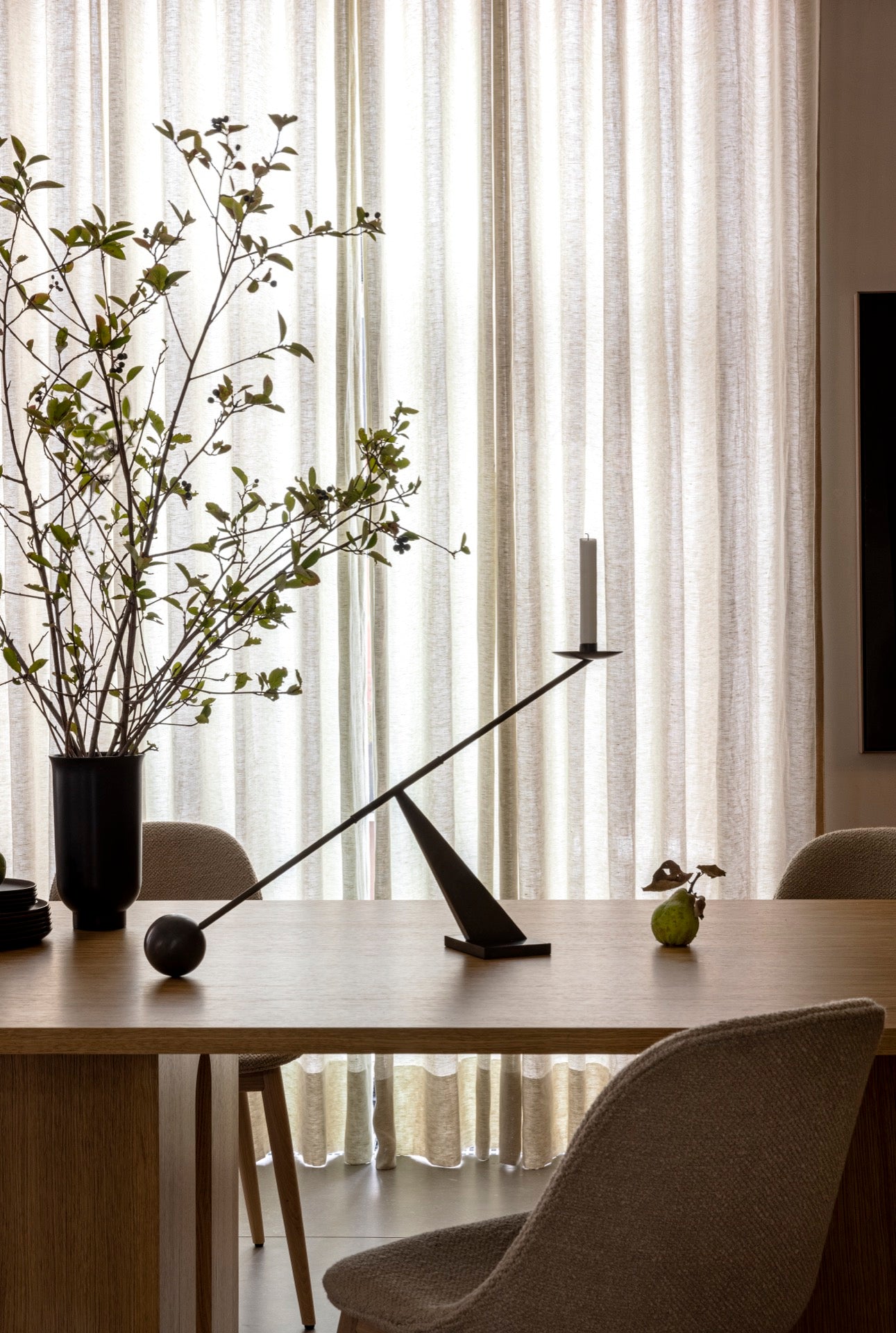 The Interconnect Candle Holder is a bold and luminous centerpiece of exaggerated proportions designed by Colin King for Audo. A source of cozy candlelight, it features a deceptively simple geometric shape: a sphere, an angle and a line that come together to create a unique design.