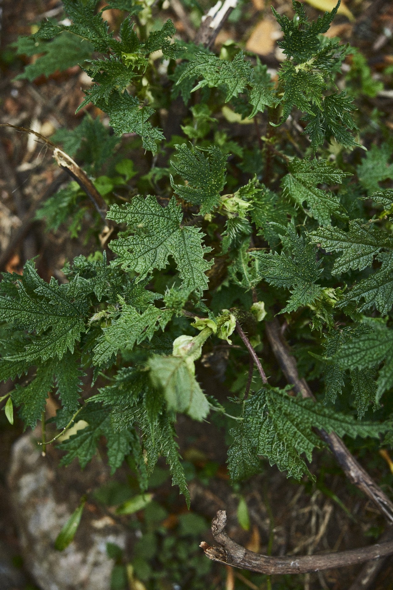 The M2R SUSTAINETTLE collection is made from the innovative material nettle. The Himalayan nettle grows wild in the primeval forests of Nepal in the foothills of the Giant Mountains. It therefore requires no re-sources such as arable land or water for cultivation and grows back quickly and easily as a seasonal plant. When the plants are completely dry after the summer, they are usually harvested by hand in October. The plant stems are the raw material for production. After harvesting, the stalks are first cut into fibers, washed in mountain rainwater without additives and then beaten by hand until they are soft enough. The processed fibers are then placed in boiling water for about six hours, beaten again and washed a second time. The water is stored and later used to irrigate the fields. The boiling process darkens the fibers. To make them light again and thus treatable with dye, they are bleached with white clay in the next processing step. After drying, the fibers look like raw wool and can be spun, dyed and knotted accordingly. Nettle production has become a good source of income for small farmers in rural areas of Nepal.