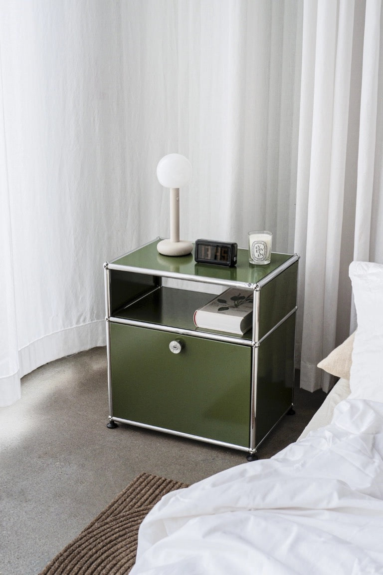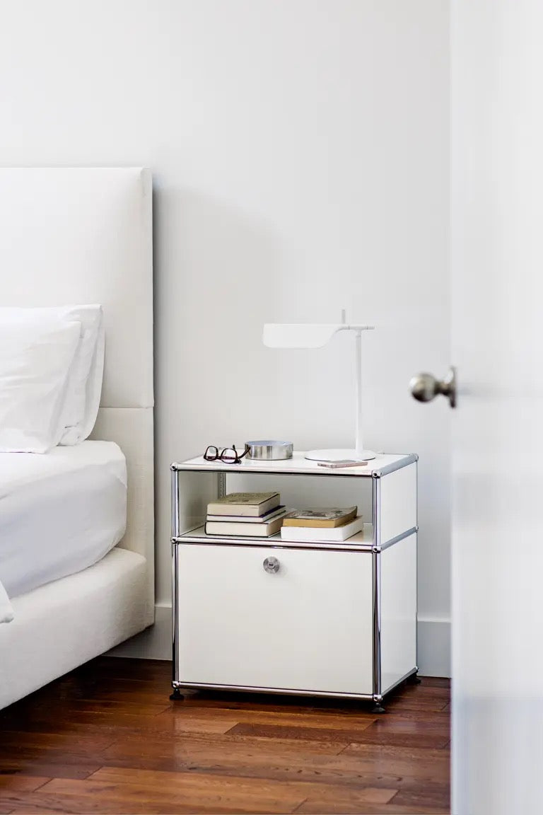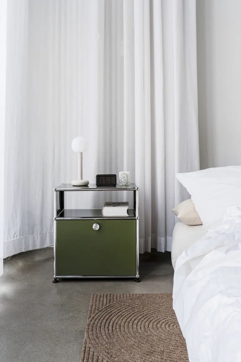 This small piece of furniture is a real space saver. The storage space behind the hinged door is divided by an intermediate shelf, making it particularly space-efficient. Small pieces of furniture are especially well suited for adding a splash of color to your living space. Choose from all 14 USM colors. With a hinged door and an intermediate shelf.