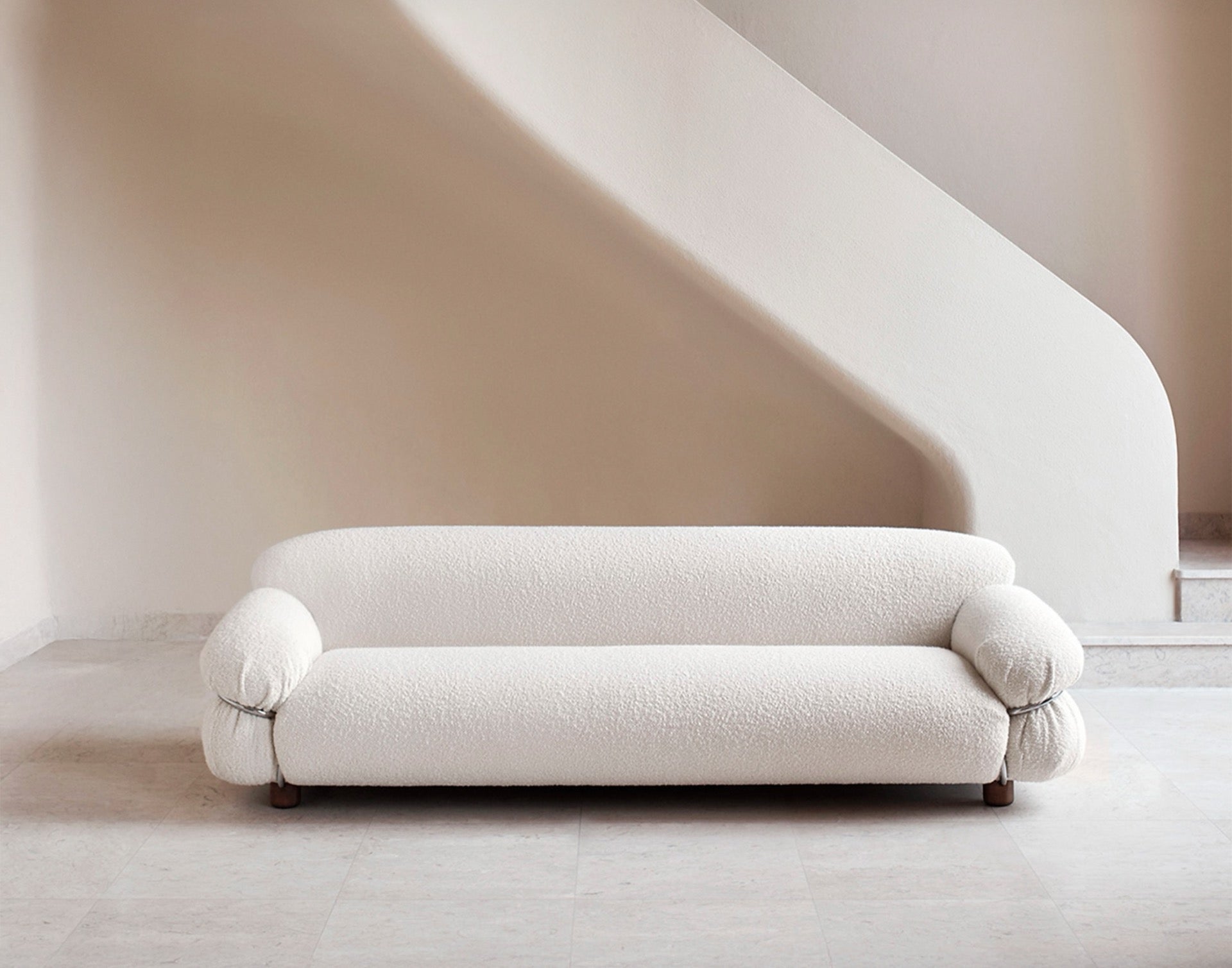 A reissue of a historic design by Gianfranco Frattini, Sesann is a collection of sofas and armchairs with soft, cosy forms that evoke feelings of warmth and sensuality, thanks to the tubular metal frame, which acts as an architectural structure, enveloping, containing and accentuating the cushioning. Sesann commands its space with its bold volumes and elegant, sophisticated design. With a choice of leather or fabric coverings to create striking combinations of colours and textures between the cushions, frame and ash wood feet.