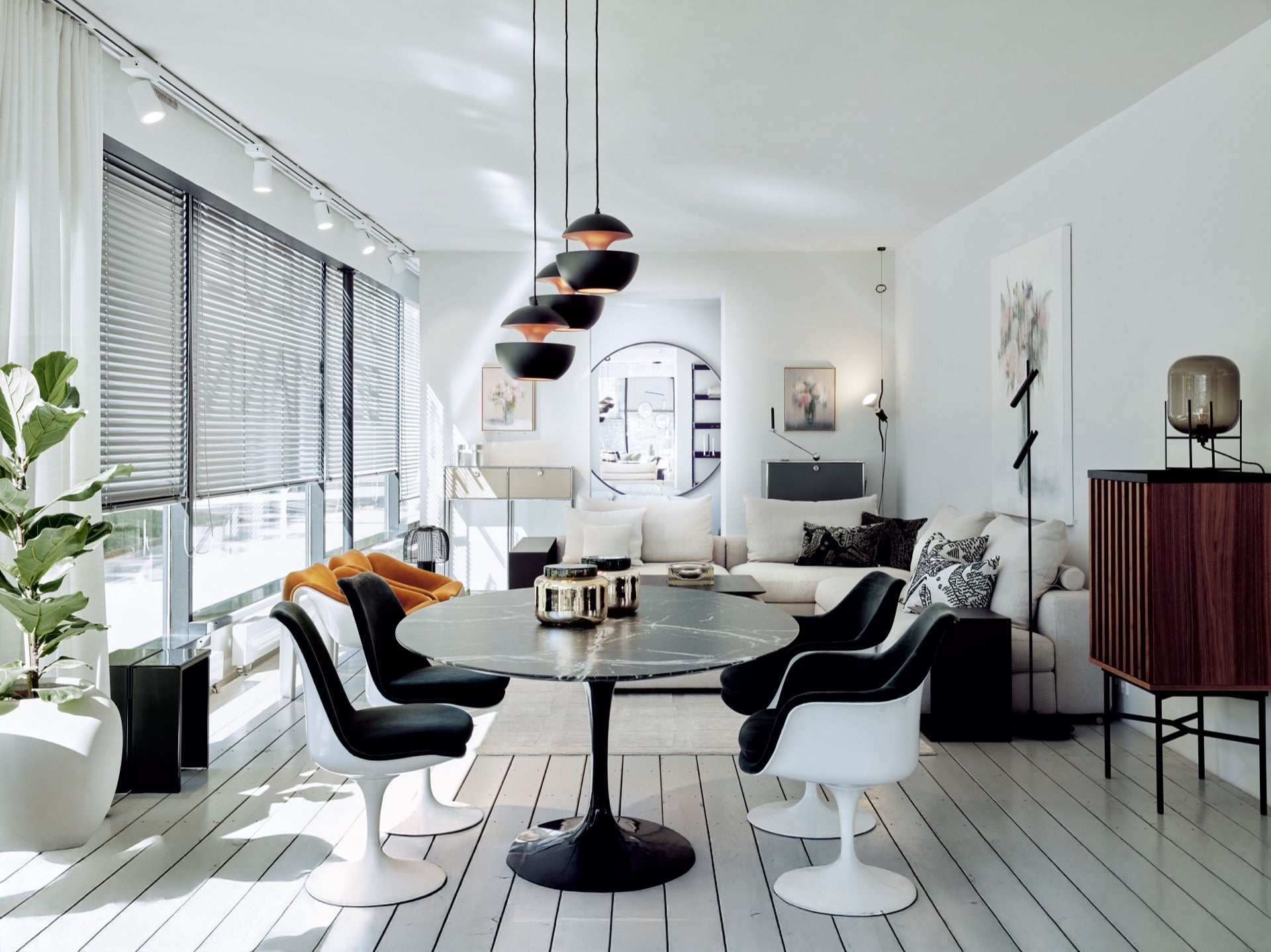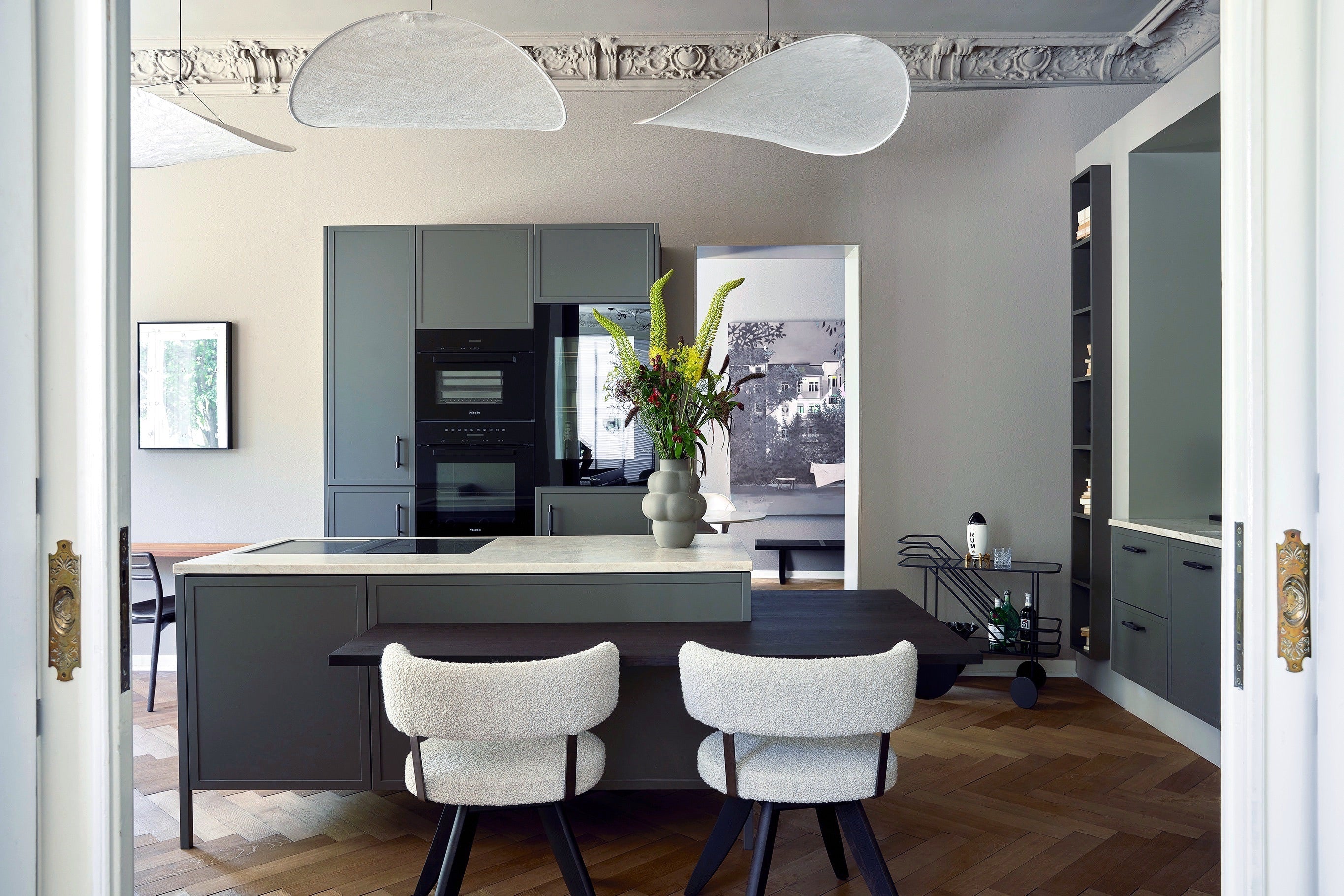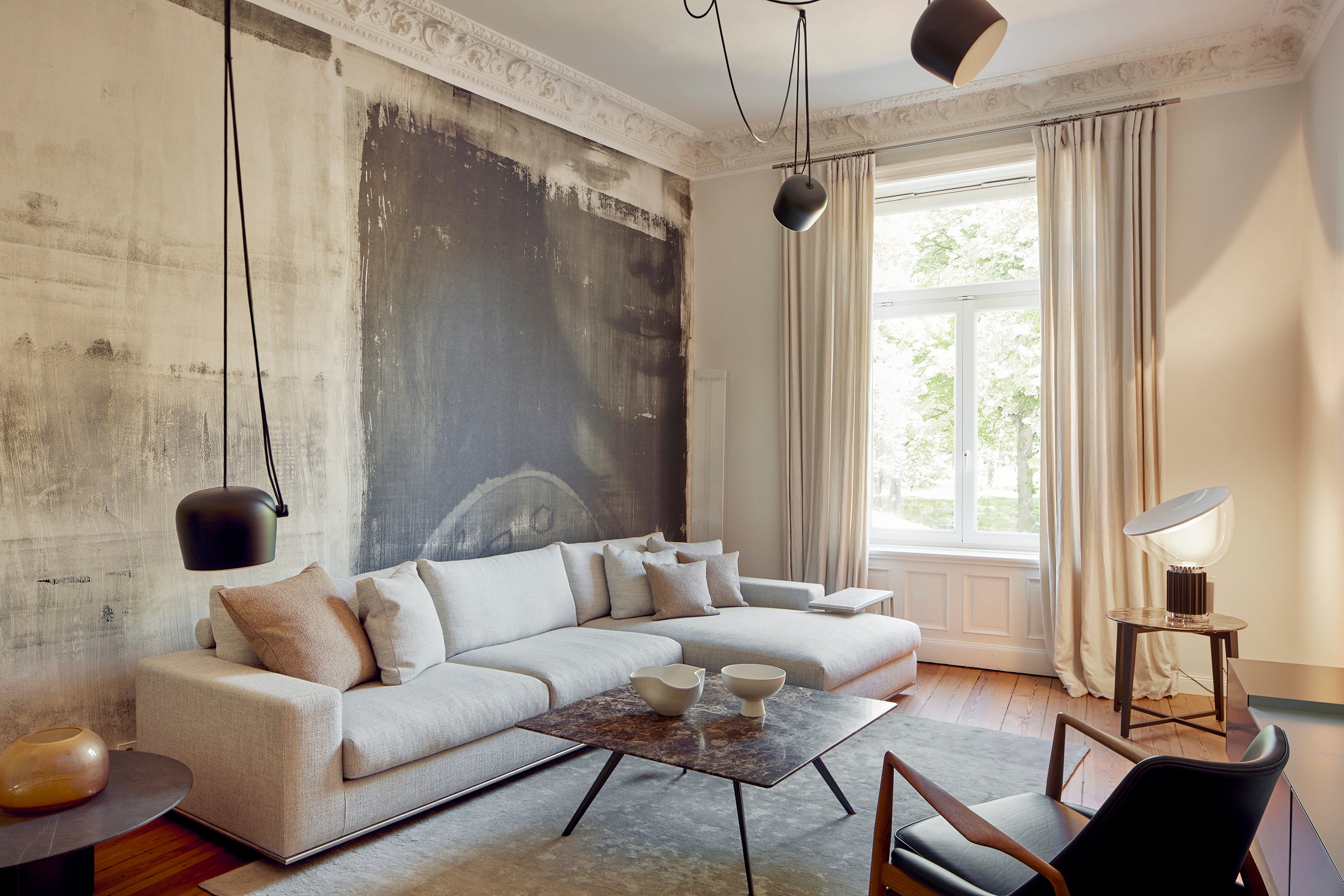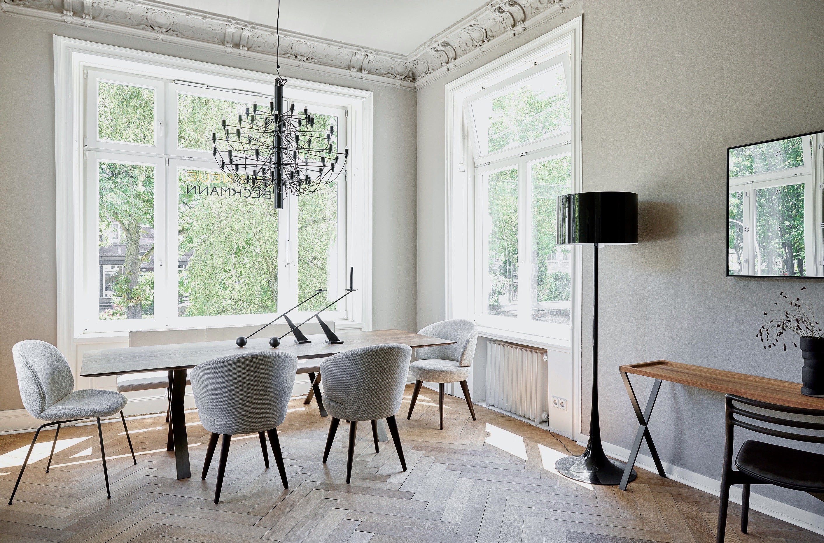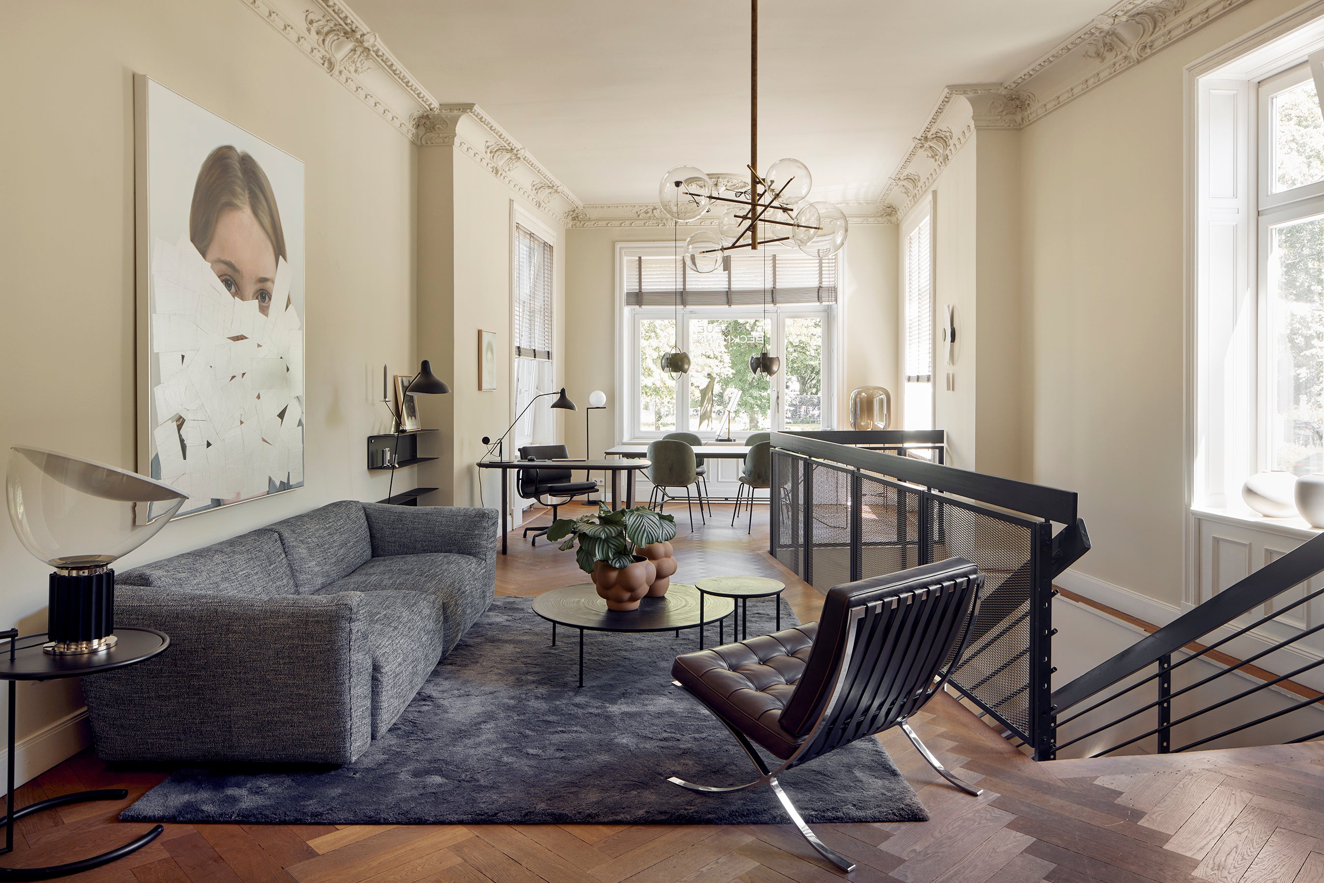 Willkommen in unserem Showroom am Klosterstern. Die bodentiefen Glasscheiben im Erdgeschoss zitieren die Bauhaus-Architektur, die bis heute die Grundlage unserer Gestaltungsphilosophie ist. Die Bel-Etage ist im Stil einer Altbauwohnung gehalten, wie sie typisch ist für die großbürgerlich geprägten Viertel der letzten Jahrhundertwende rund um die Hamburger Außenalster. Große, helle, repräsentative Räume wechseln sich ab mit kleineren Räumen, die eher ein Rückzugsort sind. Eine einzigartige Kombination, um unsere Marken „mitten im Leben“ zu präsentieren.