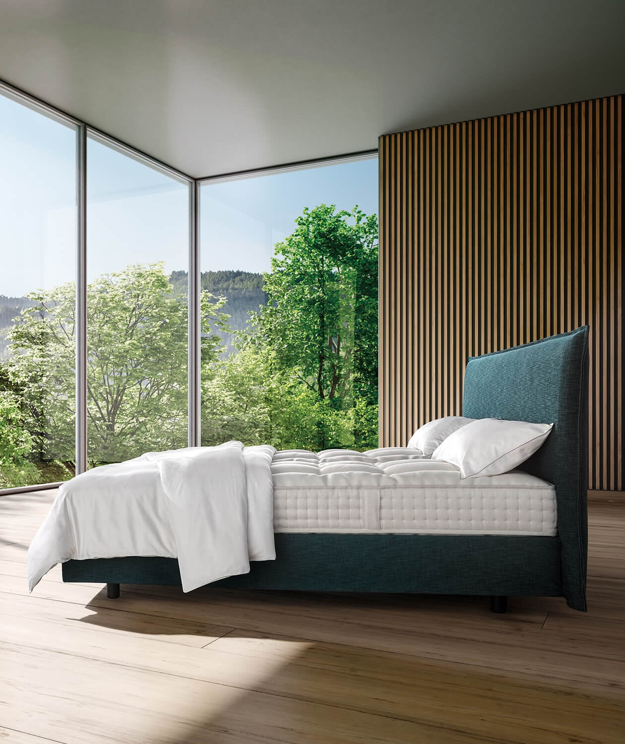 Komfort und Nachhaltigkeit vereinen sich perfekt in der neuesten Entwicklung: der Naturmatratze "ANTHEA". Die Hauptpolsterung besteht aus Talalay Naturlatex mit Luftkammern, die hypoallergen, antimikrobiell und staubmilbensicher sind. Ein umlaufender Klimasteg aus Kokosfasern sorgt für optimale Belüftung. Die handwerkliche Blindheftung fixiert die natürlichen Polstermaterialien ohne Verklebung und gewährleistet Formstabilität sowie eine hervorragende Atmungsaktivität. Der Integral-Taschenfederkern mit fein differenzierter Federkraft in der Matratzen-Längsrichtung bietet eine exzellente Körperunterstützung durch einen fließenden Kraftverlauf. Alle Matratzen werden in der SCHRAMM Manufaktur in reiner Handarbeit ofenthermisch vergütet.