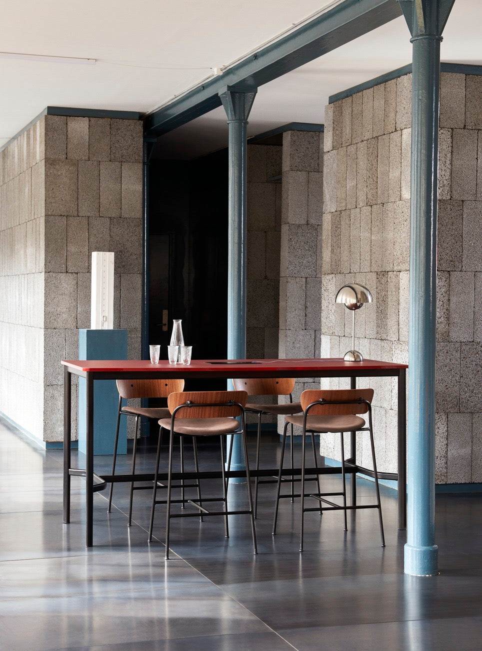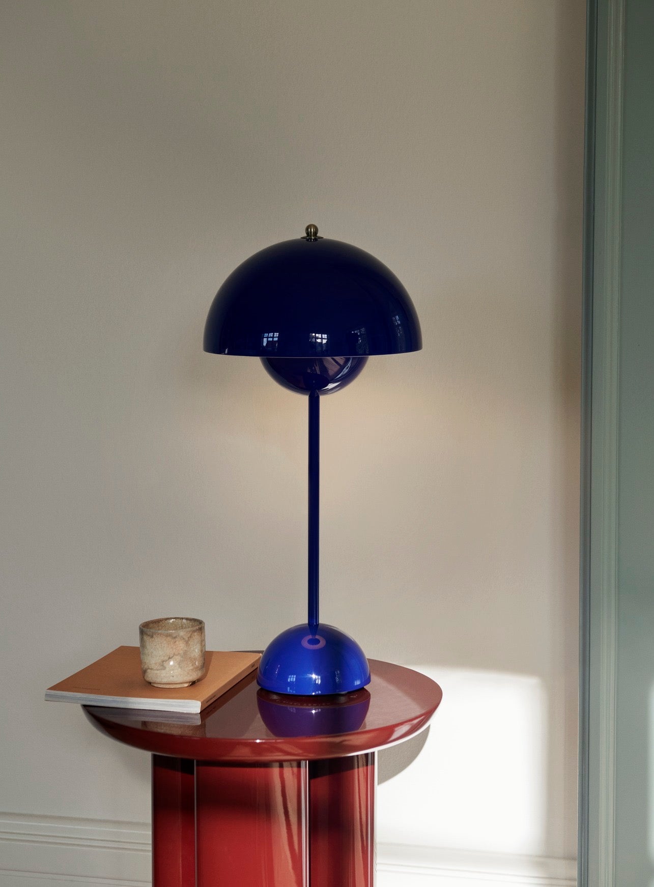 Swim Blue, Tangy Pink, Vermilion Red, Cobalt Blue, Dark Plum, Signal Green, Mustard, Grey Beige, Matt Black, Matt White, Matt Light Grey, Chrome-Plated, Brass- Plated, Stone Blue