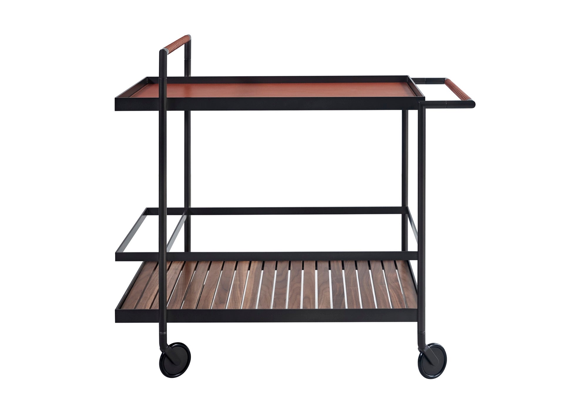 Obere Platte aus Metall mit Anilinleder bespannt.