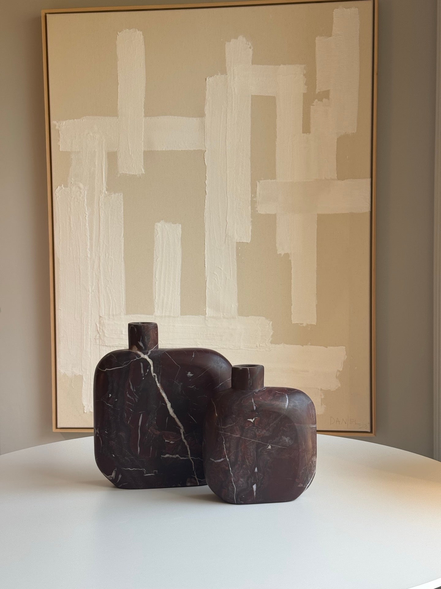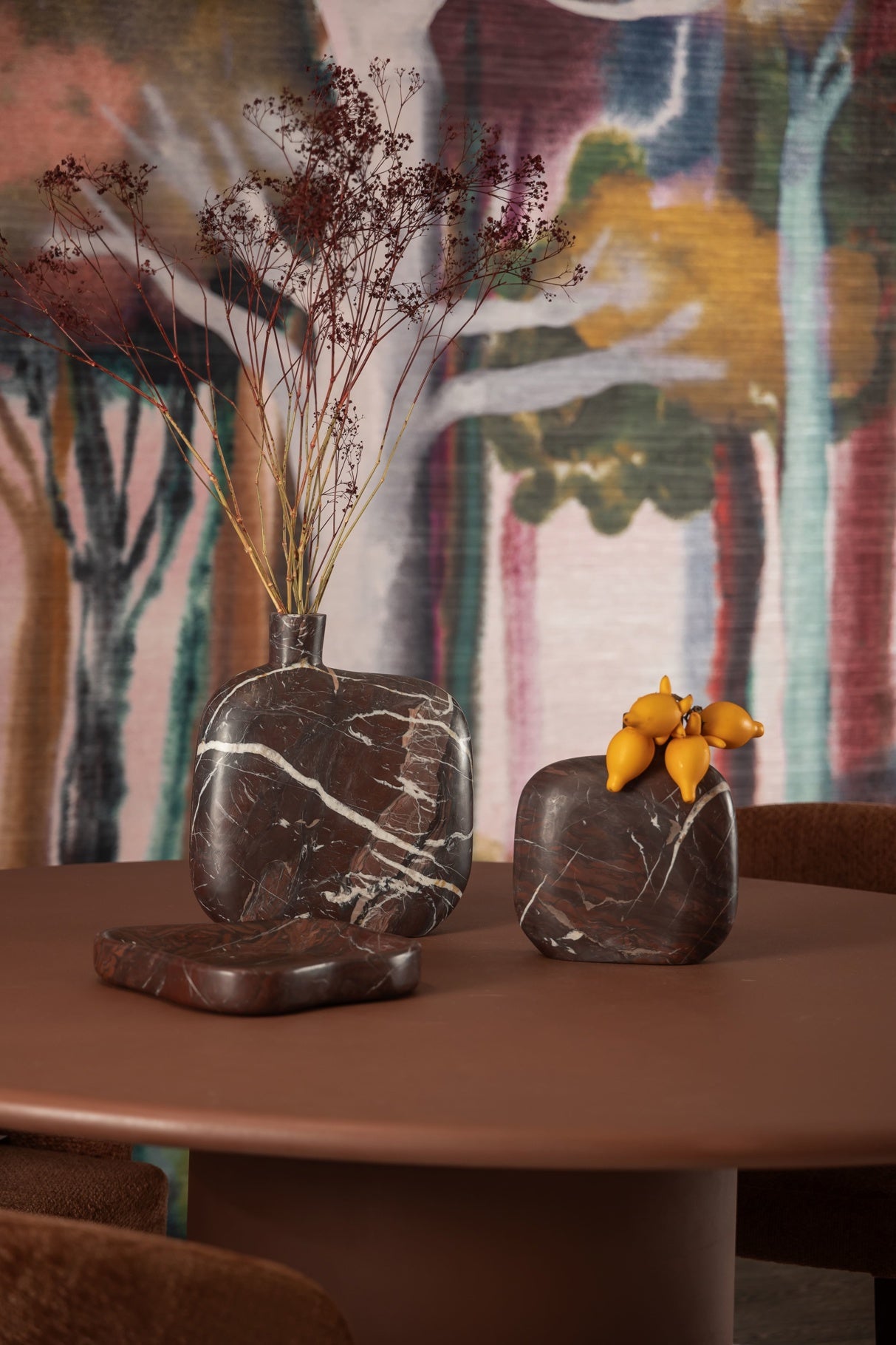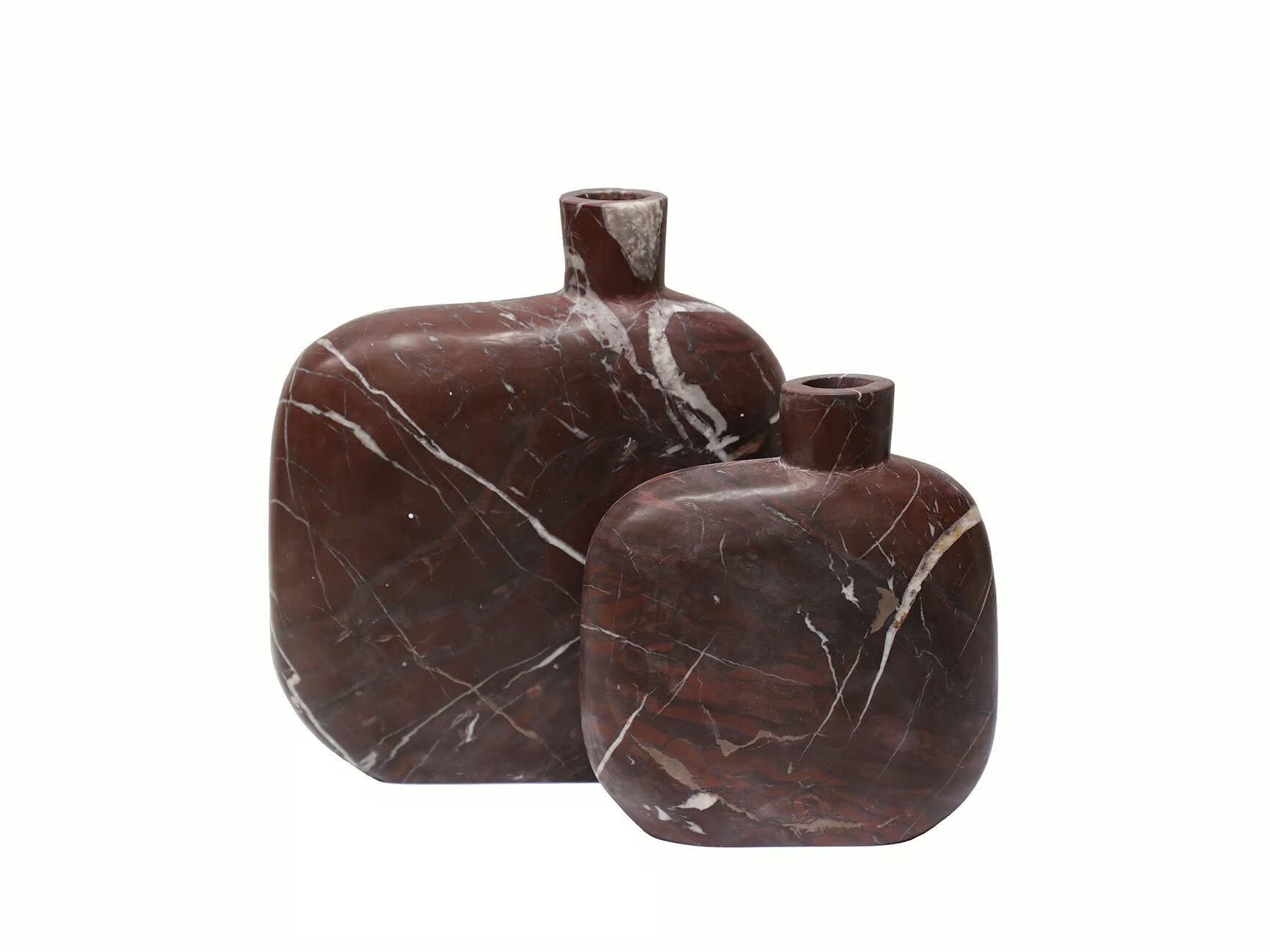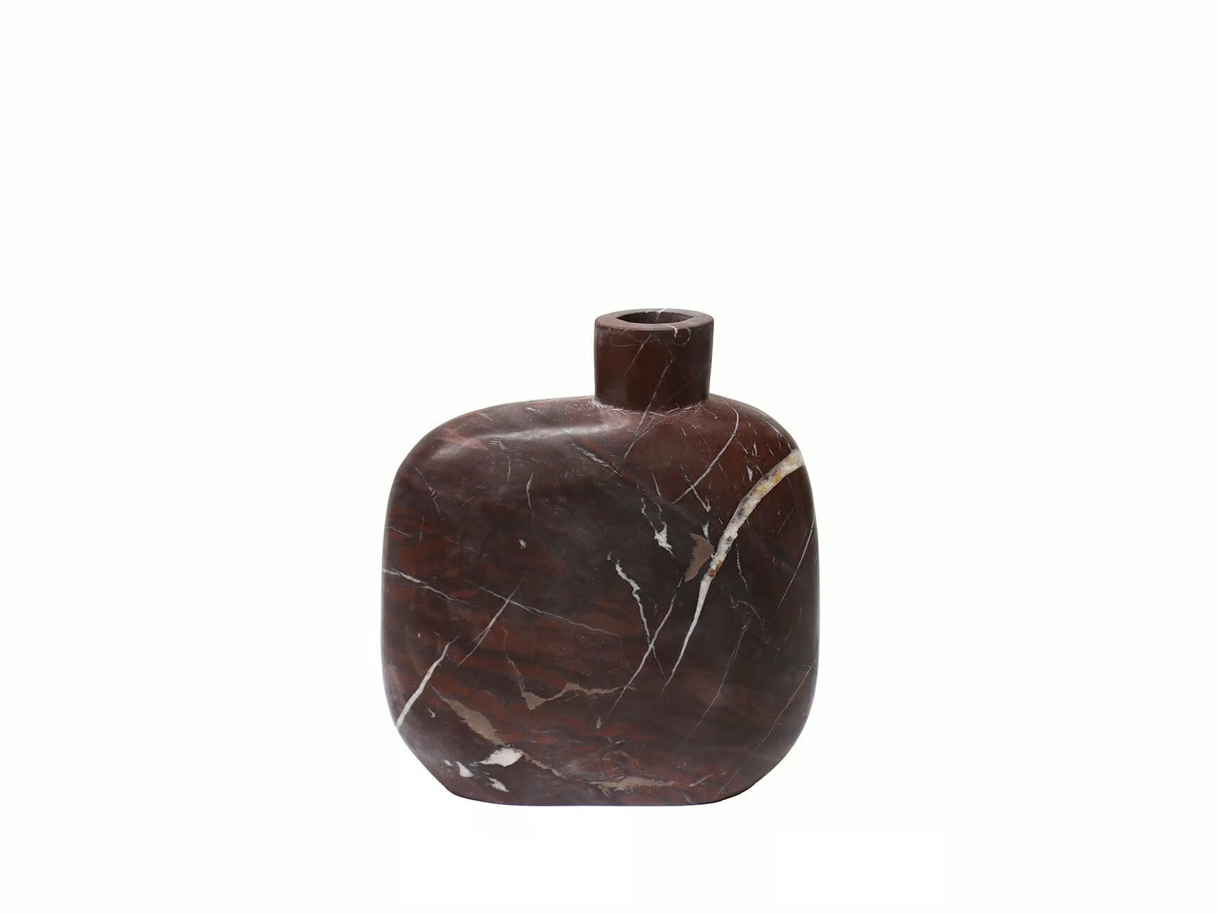 Die Vase Mira überzeugt mit ihrer skulpturalen Form und dem edlen Material: roter Marmor. Jede Vase ist ein Unikat, denn die natürliche Farbvariation gehört zu den charakteristischen Merkmalen dieses besonderen Marmors.