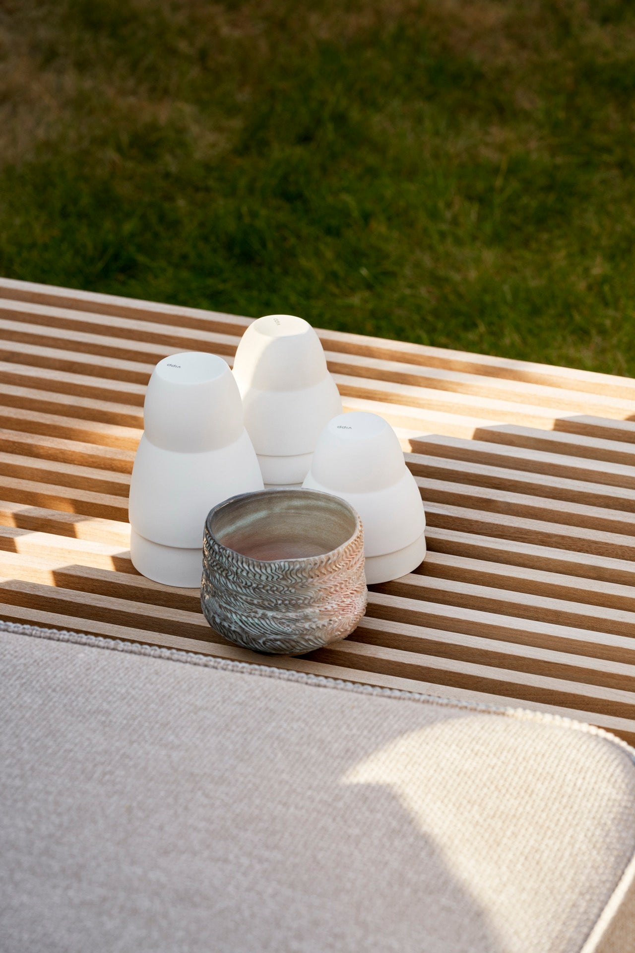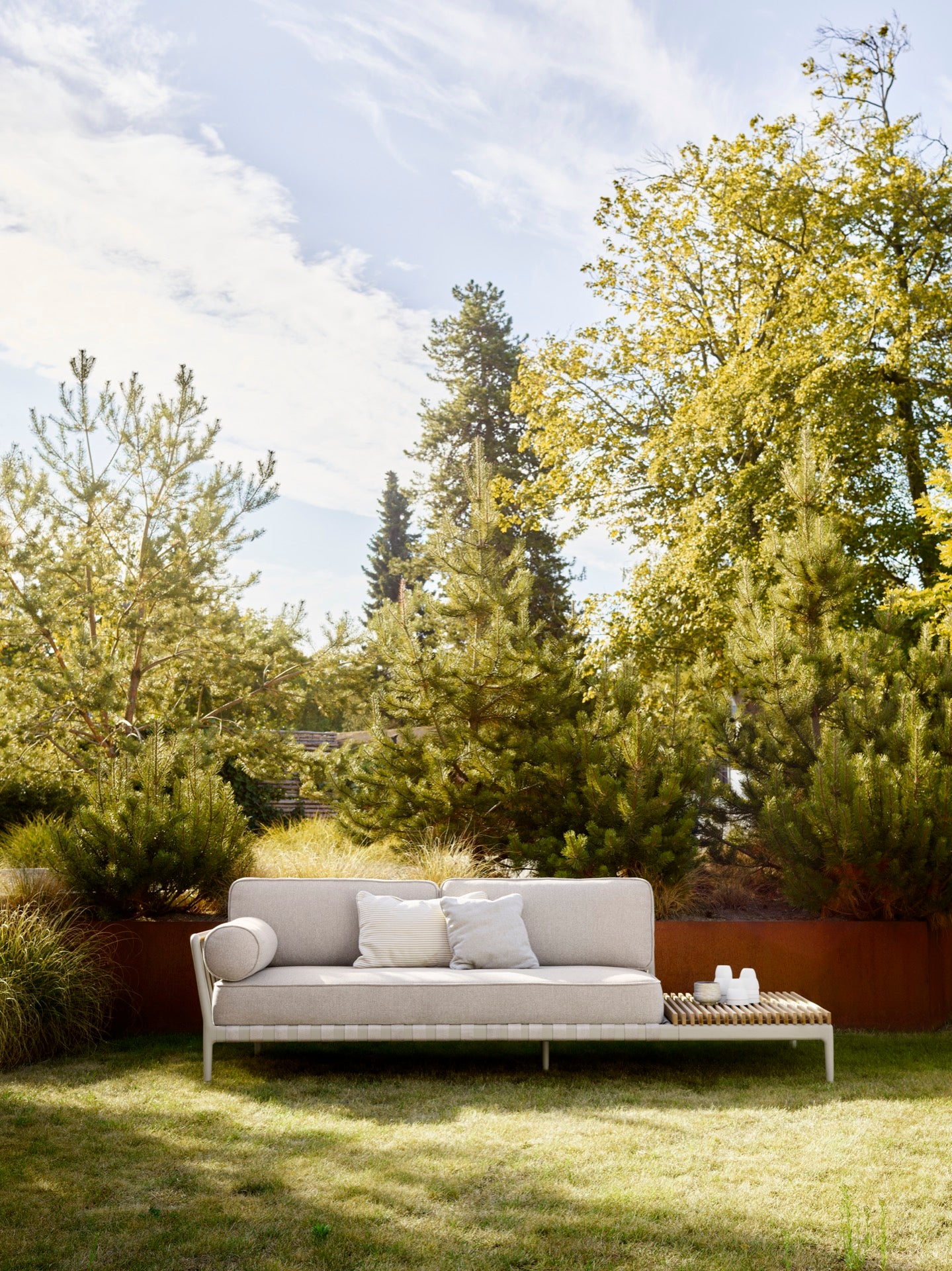 Mit dem Open-Air Sofa Table End von Vipp wird der Außenbereich zu einem Ort der Entspannung und des Wohlfühlens. Es ist eine praktische und stilvolle Ergänzung für jede Terrasse oder jeden Garten.