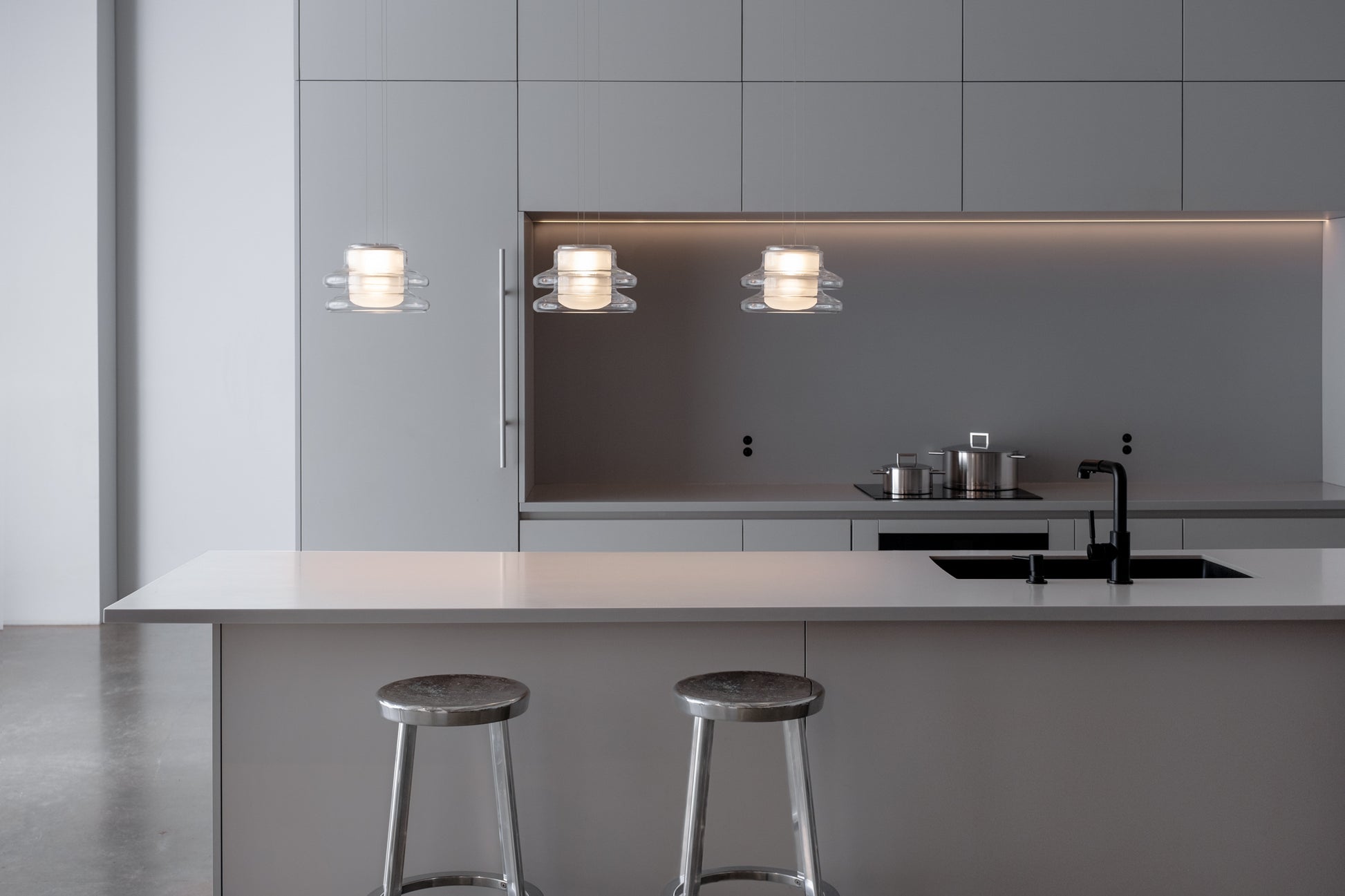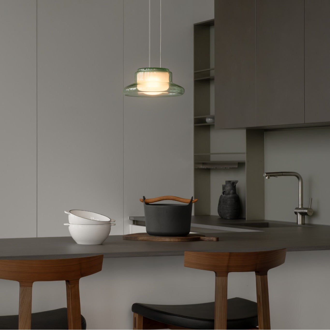 Der Name „Pace“ leitet sich von den Begriffen Rhythmus, Tempo und Wiederholung ab. Das Zusammenspiel von Licht und Material zeigt sich in den Farbverläufen und Reflexionen, die entstehen, wenn das Licht durch die aufeinanderfolgenden Glasschichten fällt. Dünn und leicht, aber üppig und stapelbar, ist die Serie Pace eine beispielhafte Übung in gewundener Form.