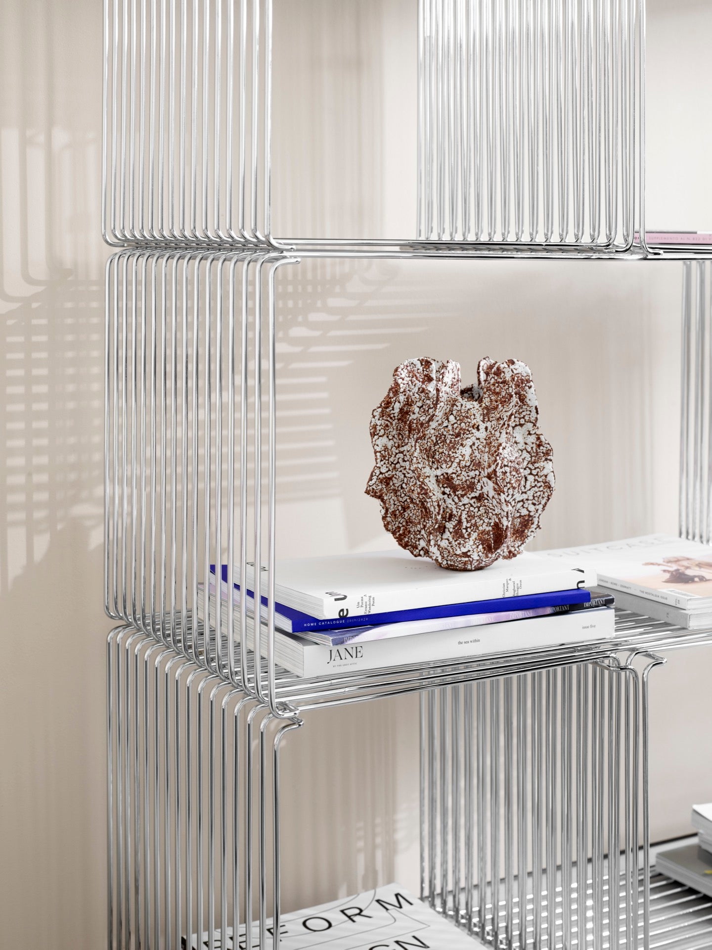 Das Panton Wire Extended-Modul ist Teil des ikonischen Drahtregalsystems von Verner Panton aus dem Jahr 1971. Das Drahtmodul ist in den Tiefen 25,7 cm und 34,8 cm erhältlich und besteht aus 5 mm Draht, in Chrom-Ausführung oder lackiert in den Farben Snow, Black, Monarch, Pine, Black Red und Rosehip. Das Panton Wire Extended kann allein oder in Kombination mit anderen Panton Wire-Produkten verwendet werden – auf dem Boden, an der Wand hängend oder als Raumteiler. Verwenden Sie das Panton Wire Extended beispielsweise als Couchtisch mit einem oberen Paneel im Wohnzimmer, um Bücher, Zeitschriften, Elektronik und andere Gegenstände aufzubewahren.
